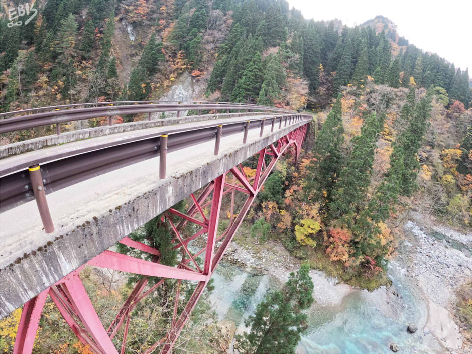 赤色の橋は太良峡のシンボルとして昭和40(1960年)に開通、