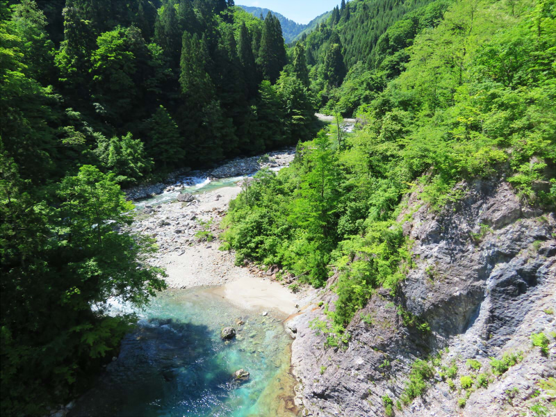 ここから逆上ること約三キロの地点から、太良溪谷の遊歩道が一コロにわたって整備され、その周りには樹齢二百年以上の天然秋田スギや、ブナ、ナラなどの広葉樹、大小の滝、渓谷では奇岩や白神山地の清流が満喫できる。