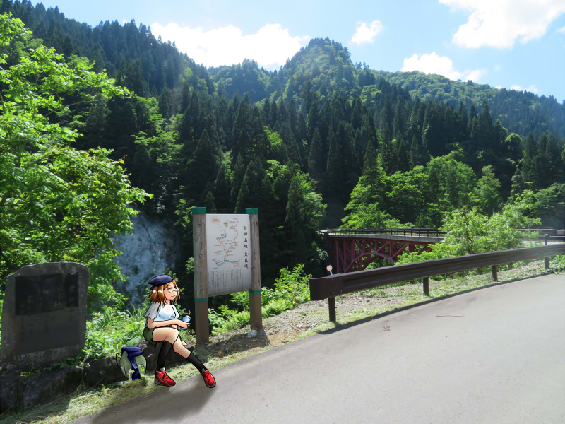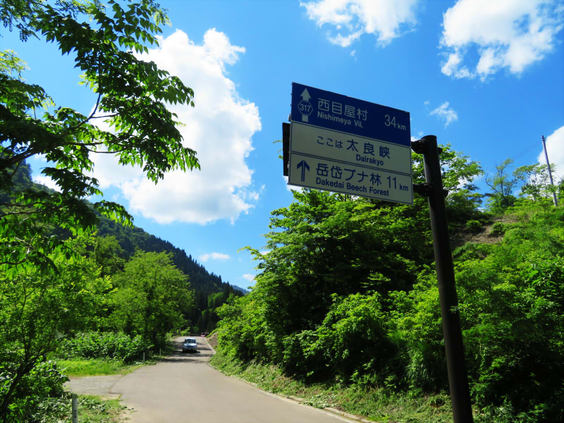 また、ここから4.6kmの地点から道路が分岐し、右側の白石沢からは青森県境のつるべ峠を越え弘前市に至る。